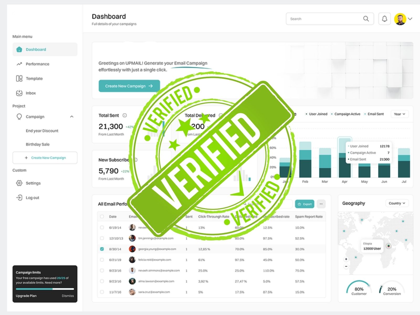 I Will Set Up an Unlimited Email Sending SMTP server for Your Own Mail Server Without Any Limitations like Mailchimp, GetResponse, etc.My Services:Free SSLFree Email Marketing ScriptsBest Email...